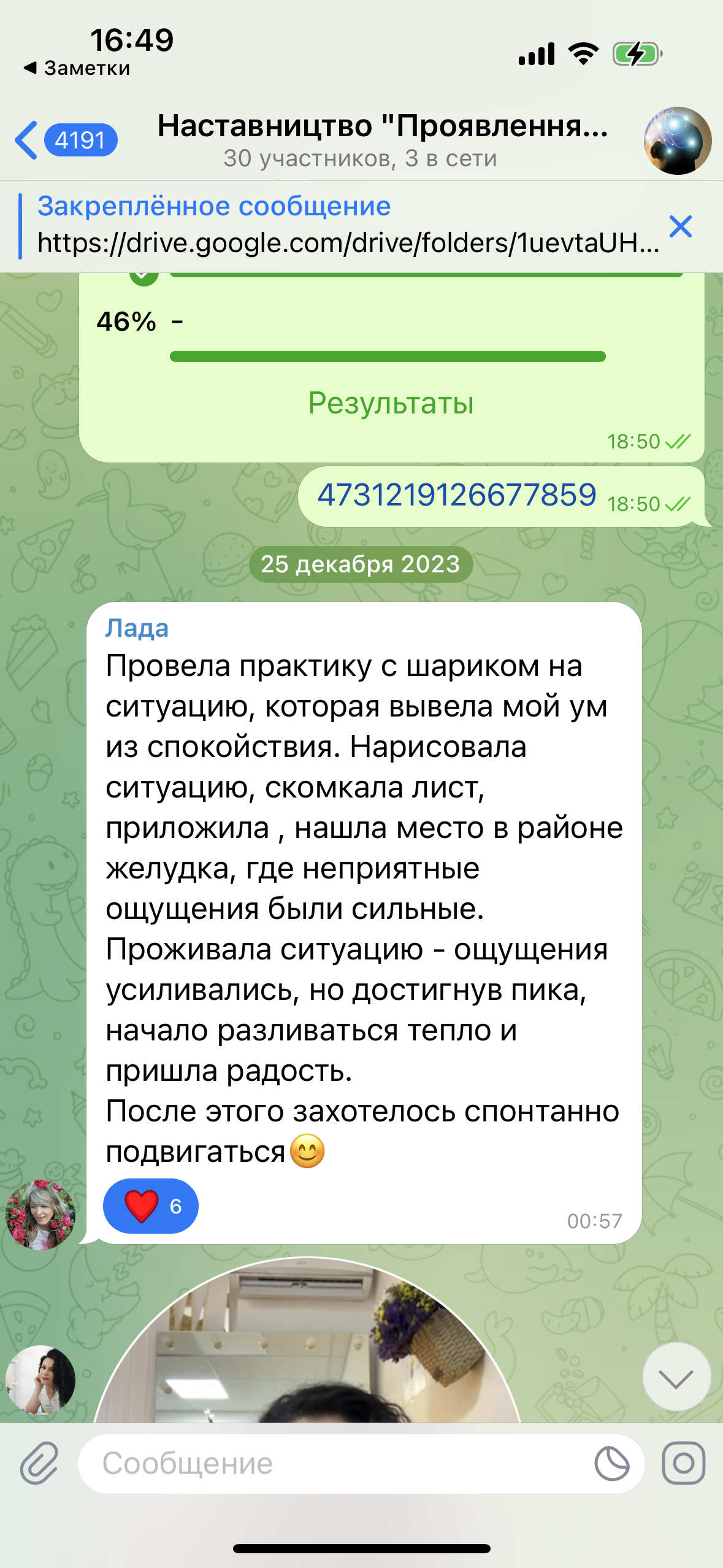 С помощью техники “Шарик” мы находим запирающий конфликт, который приводит к подавлению эмоций. Проживая этот конфликт, высвобождается колоссальное количество энергии, объем энергии который был у человека увеличивается в разы. И к нему снова возвращается радость от жизни.